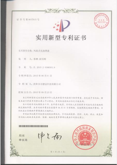 實(shí)用新型:風(fēng)扇式電加熱器專(zhuān)利