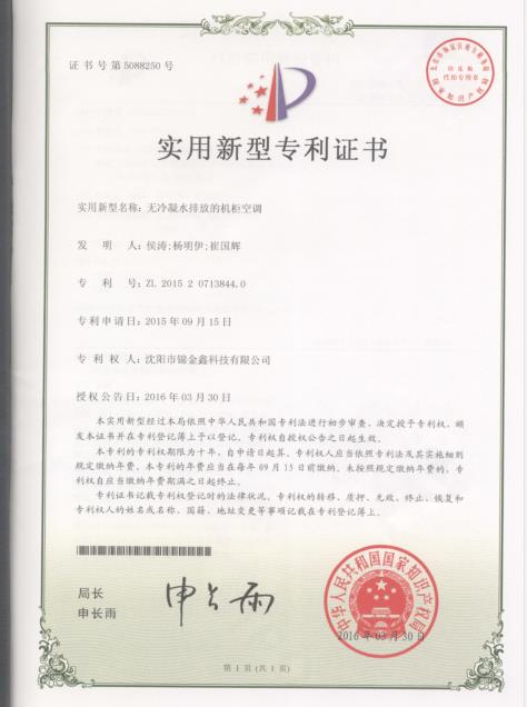 實用新型-無冷凝水排放的機柜空調(diào)844.0
