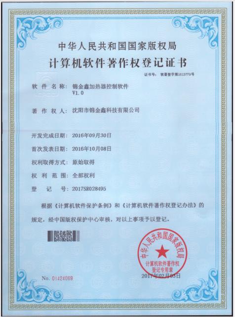 軟件著作權(quán)-錦金鑫加熱器控制軟件V1.0