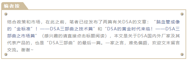 除了上面提到的幾家,聯(lián)影在2017年也獲得了國(guó)家“數(shù)字診療裝備研發(fā)”專(zhuān)項(xiàng)項(xiàng)目資金支持,承擔(dān)新型低劑量數(shù)字減影血管造影(DSA)X射線(xiàn)成像系統(tǒng)及臨床應(yīng)用技術(shù),項(xiàng)目周期4年。按照聯(lián)影的研發(fā)實(shí)力,我們相信他們的DSA產(chǎn)品也會(huì)在不久的將來(lái)推向市場(chǎng)。