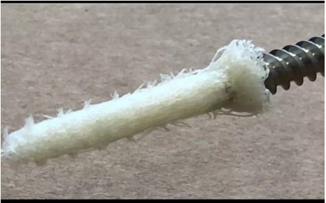 TheraFuze DBF纖維錨完全由該公司的脫礦皮質(zhì)骨纖維制成。測試表明,與沒有纖維錨的螺釘相比,它的拉拔力增加了一倍多。一個翻修手術(shù)模型中進行的測試表明,它可以在不增加孔尺寸或使用任何其他材料的情況下恢復或改進原來的拉拔力。錨最初的尺寸適合與5.5、6.5和7.5毫米的螺釘一起使用。