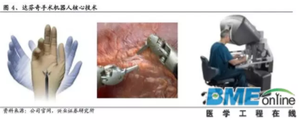 達芬奇手術(shù)機器人代表著當(dāng)今手術(shù)機器人最高水平,它有三個關(guān)鍵核心技術(shù):可自由運動的手臂腕部Endo Wrist、3D高清影像技術(shù)、主控臺的人機交互設(shè)計。