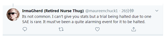 “這并不常見。我不能給你統(tǒng)計數(shù)據(jù),但一個試驗由于嚴(yán)重不良事件被叫停是罕見的。其暫停一定是一個相當(dāng)令人震驚的事件。”