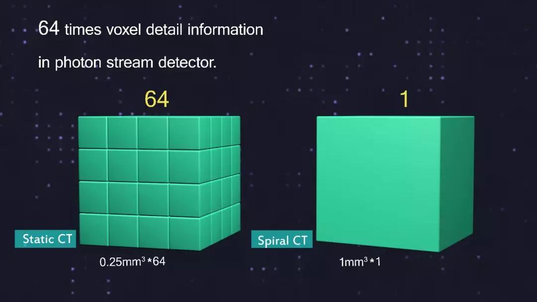 靜態(tài)CT被稱為是具有突破性技術(shù)的第六代CT,它主要是采用陣列光子流探測器和掃描射線源構(gòu)成的雙環(huán)結(jié)構(gòu),射線源環(huán)圓周布有數(shù)百個(gè)焦點(diǎn),掃描時(shí)不需機(jī)械旋轉(zhuǎn),而通過時(shí)序控制圓周焦點(diǎn)依次曝光,快速地完成CT掃描和重建,具掃描速度快,高空間分辨率,多能量成像等優(yōu)勢(shì)。