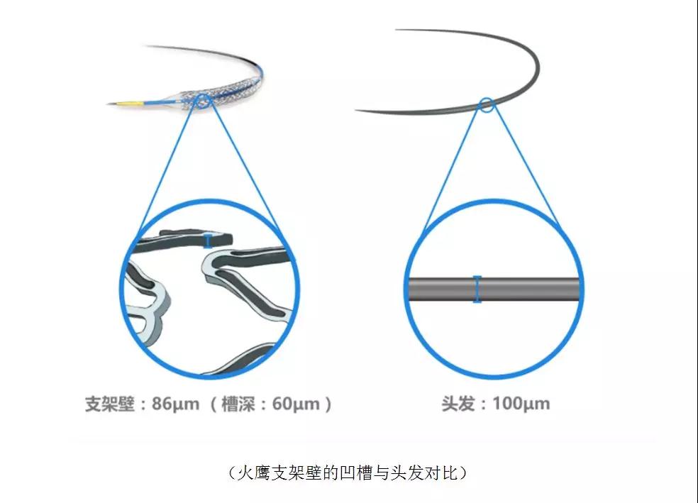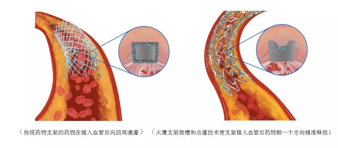 怎樣把藥物完美地“保存”在支架上?經(jīng)過反復(fù)設(shè)計和比較,火鷹研發(fā)團(tuán)隊歷時15年,選擇并達(dá)成了技術(shù)上最難實(shí)現(xiàn)的一種方案——微槽包裹藥物,即在金屬支架表面用激光刻槽,再把藥物灌入槽內(nèi)。和傳統(tǒng)技術(shù)的區(qū)別在于,刻槽可防止涂層在輸送過程中脫落,藥物不會流失,且藥物抵達(dá)血管病變區(qū)后,能通過固定的槽位精準(zhǔn)釋放,大幅提高了有效性,也避免了浪費(fèi)。