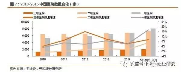 注:2015年醫(yī)院數(shù)量衛(wèi)計(jì)委只有1-11月數(shù)據(jù),但不影響整體趨勢(shì)和判斷。