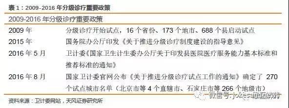 2009年國(guó)家開始嘗試分級(jí)診療,各地區(qū)進(jìn)行小范圍試點(diǎn),但效果相對(duì)不明顯。2016年分級(jí)診療作為一個(gè)重要的民生課題又被持續(xù)推上風(fēng)口浪尖,各種政策密集出臺(tái)。