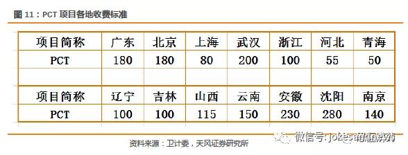按照購(gòu)買力平價(jià),PCT項(xiàng)目在中國(guó)收費(fèi)為50比較合理。最早進(jìn)口品牌進(jìn)入中國(guó),一般先進(jìn)入經(jīng)濟(jì)相對(duì)發(fā)達(dá),人口密集的大省,因此最早的價(jià)格多在150-200之間。2014年上海的PCT價(jià)格為100,今年已經(jīng)降為80,未來(lái)依然存在降價(jià)的趨勢(shì),并且會(huì)各個(gè)城市都會(huì)持續(xù)下調(diào)收費(fèi)。