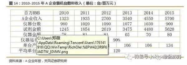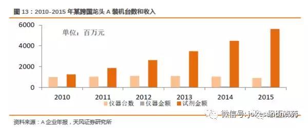 從上圖看出,A企業(yè)的試劑和儀器如果按金額計(jì)算,超出10:1,但由于以前裝機(jī)的儀器會(huì)產(chǎn)生累計(jì)疊加效應(yīng),因此不能單純相比,要根據(jù)儀器保有量測(cè)算修正。