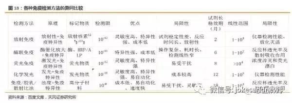 化學(xué)發(fā)光大部分項(xiàng)目為三類注冊(cè),由儀器試劑組成封閉系統(tǒng),無(wú)開放系統(tǒng),技術(shù)門檻高,準(zhǔn)入難,具有先天護(hù)城河優(yōu)勢(shì)。化學(xué)發(fā)光屬于體外診斷子行業(yè)中的免疫分支,臨床免疫廣義包括以抗原抗體結(jié)合為原理的所有產(chǎn)品,包括化學(xué)發(fā)光、酶聯(lián)免疫、膠體金、放免、生化中的免疫比濁和膠乳項(xiàng)目、特種蛋白儀等。狹義的臨床免疫通常指化學(xué)發(fā)光,該名稱取決于其方法學(xué)信號(hào)檢測(cè)的特點(diǎn)。不同的免疫學(xué)方法有不同的應(yīng)用場(chǎng)景和優(yōu)劣勢(shì),具體如下表所示: