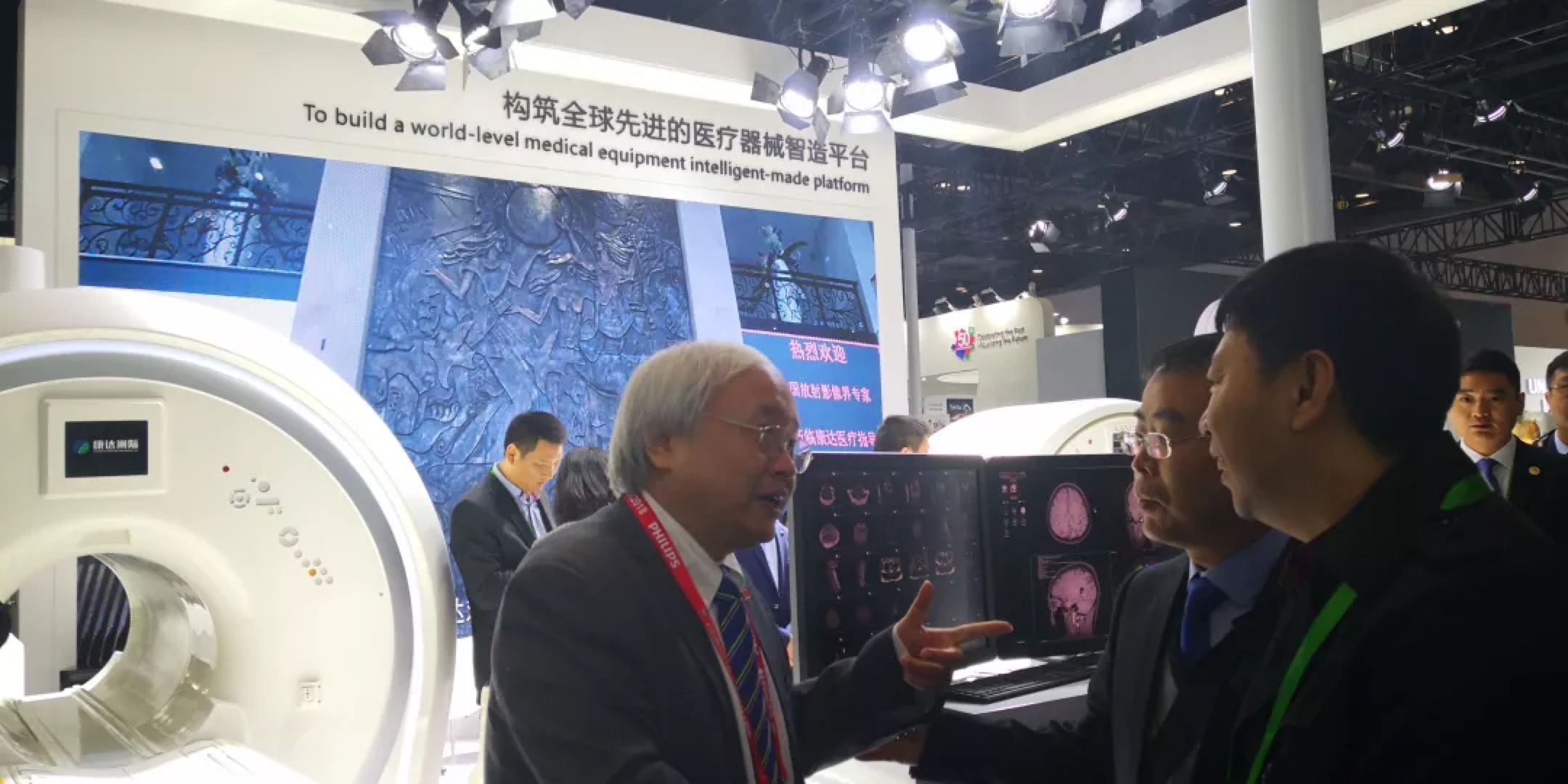 中國(guó)放射學(xué)家、中華醫(yī)學(xué)會(huì)放射學(xué)分會(huì)主任委員、北京協(xié)和醫(yī)院放射科主任金征宇一行也特意來(lái)到了康達(dá)洲際展臺(tái)。金征宇教授在聽(tīng)取了康達(dá)的工作人員對(duì)康達(dá)洲際1.5T磁共振等一系列產(chǎn)品的介紹后,對(duì)康達(dá)洲際在產(chǎn)品的研發(fā)和創(chuàng)新上給予了高度肯定。