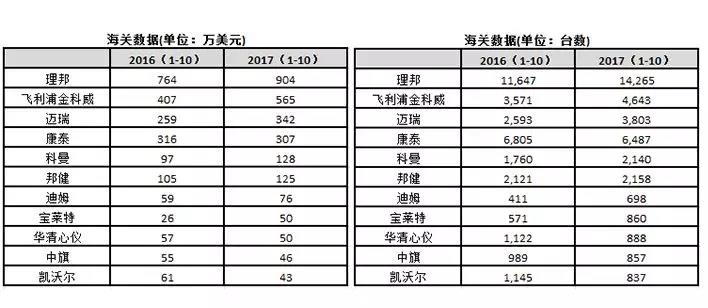 截止2017年10月國(guó)內(nèi)心電廠家出口銷量及銷售額