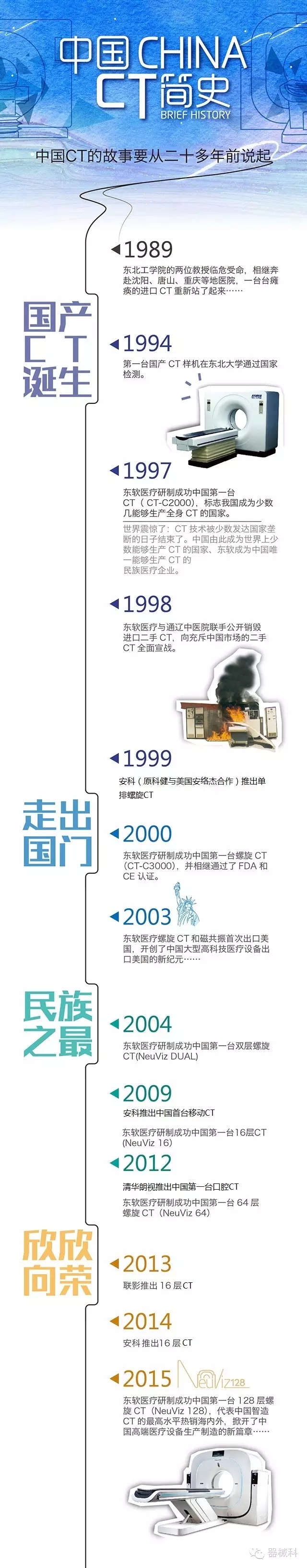 中國(guó)第一臺(tái)自主研制的CT樣機(jī)面世,標(biāo)志著中國(guó)成為世界上第四個(gè)能夠自行設(shè)計(jì),生產(chǎn)全身CT的國(guó)家。