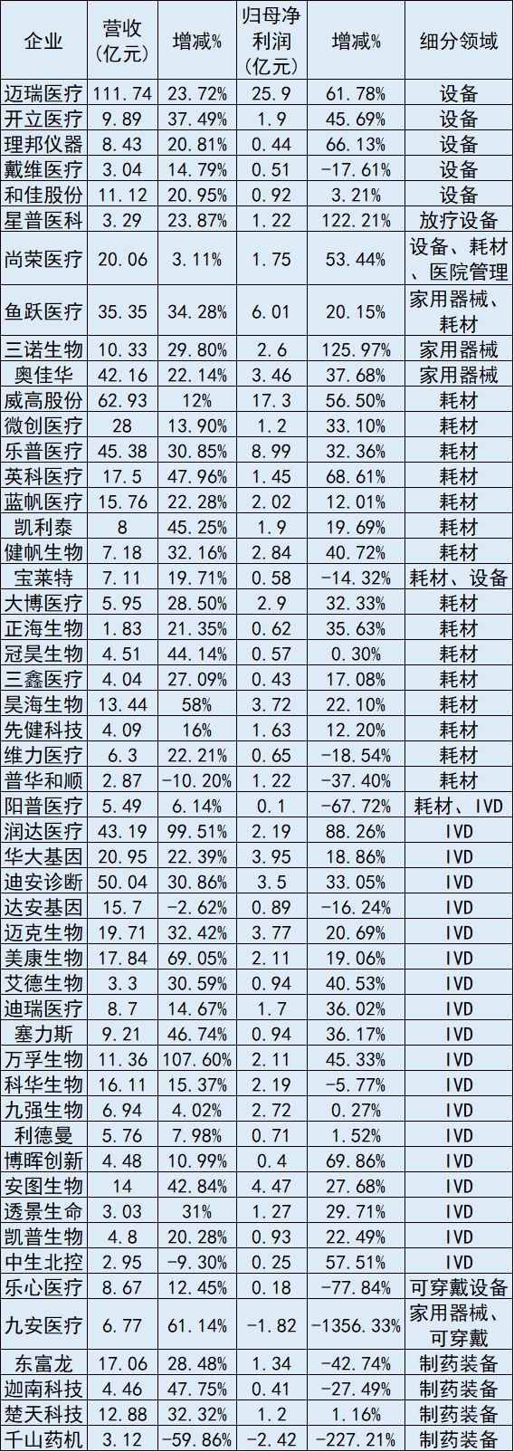 截至目前,除了新華醫(yī)療之外,尚未公布完整業(yè)績的國內(nèi)械企還有:醫(yī)療設(shè)備界的汕頭超聲和萬東醫(yī)療;耗材領(lǐng)域的康德萊;IVD領(lǐng)域的金域醫(yī)學(xué)、基蛋生物、中源協(xié)和;以及藥用玻璃包裝制造商山東藥玻。