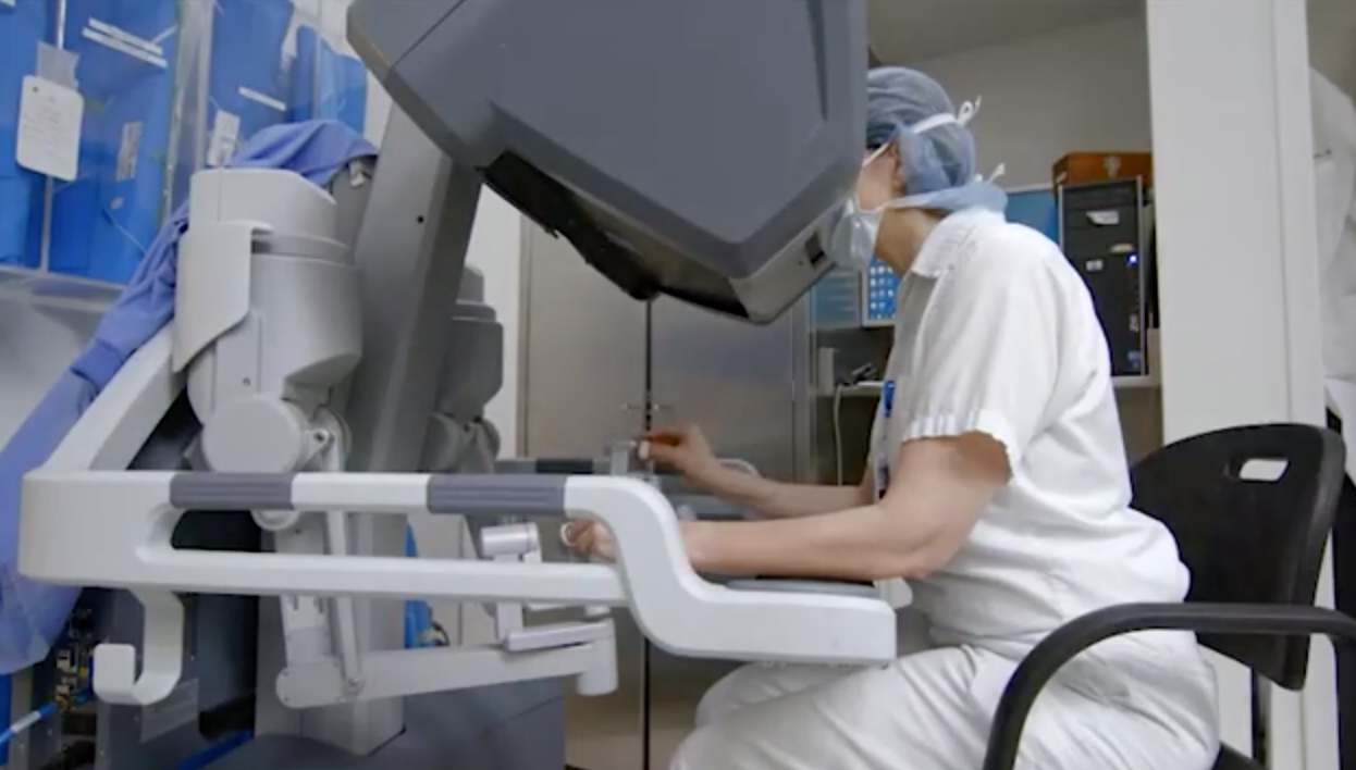 外科醫(yī)生從位于手術(shù)室的控制臺控制這些儀器和攝像機。將手指放入主控制器中,他能夠同時操作達芬奇的所有四個手臂,同時通過立體高清顯示器觀察,將他放在患者體內(nèi),為他提供更好,更詳細(xì)的三維視圖操作現(xiàn)場比人眼可以提供的。他使用主控件進行的每個動作都由機器人精確復(fù)制。必要時,外科醫(yī)生甚至可以改變機器人運動的規(guī)模:如果他選擇一個三比一的比例,機器人手臂的尖端每移動三英寸就會移動一下。由于控制臺的設(shè)計,外科醫(yī)生的眼睛和手總是完全符合他對手術(shù)部位的看法,