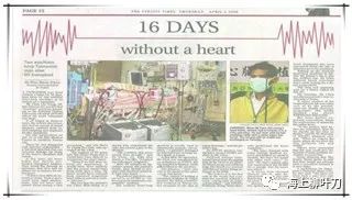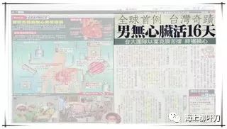 9.這是另外一個(gè)案例,報(bào)紙寫(xiě)“全球首例,臺(tái)灣奇跡,男無(wú)心臟活16天”。